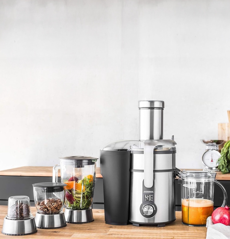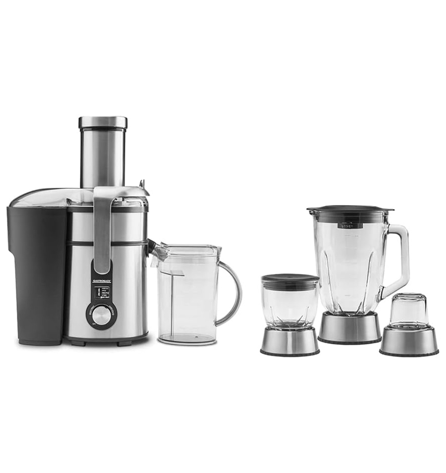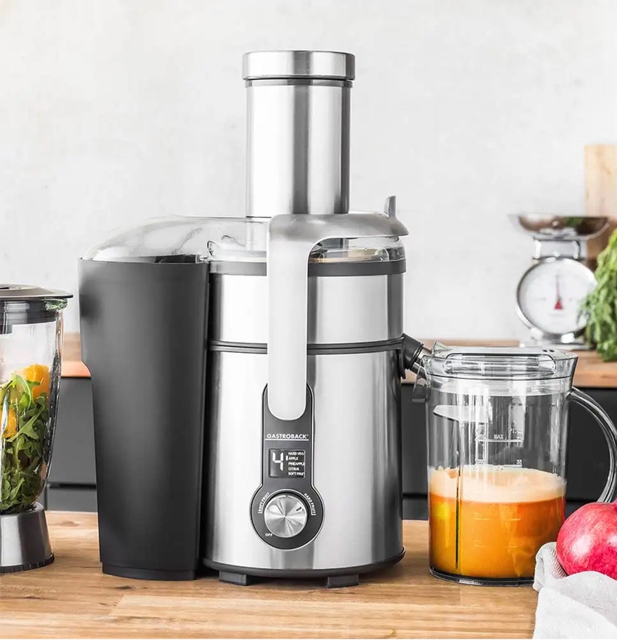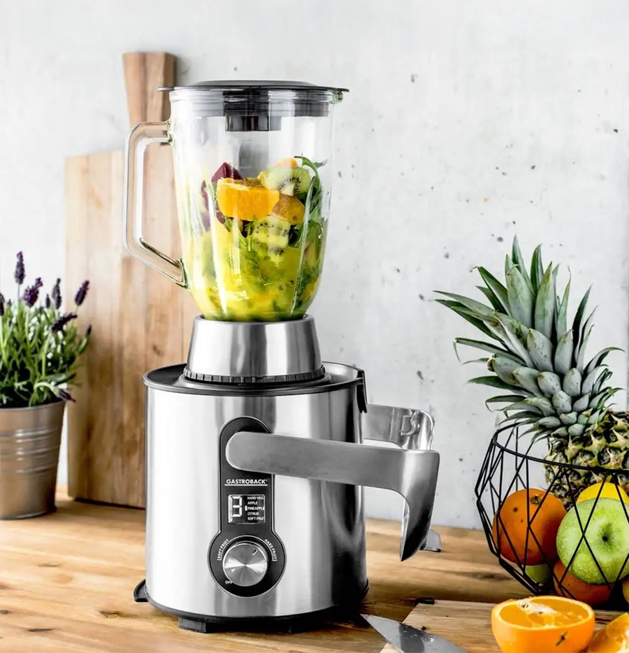 ليه تشتري 4 أجهزة وتزحم مطبخك لما ممكن تشتري "وحش" واحد يعمل كل حاجة؟ جهاز Gastroback Design Multi Juicer Digital Plus 40152 هو قمة التكنولوجيا الألمانية. ده مش مجرد عصارة، ده سيستم كامل بيحضرلك الفطار والغدا والمشروبات بلمسة واحدة.