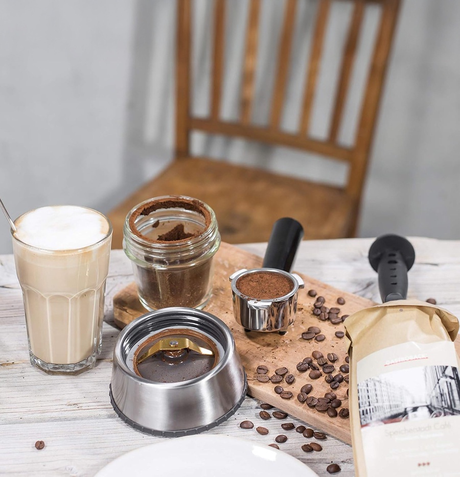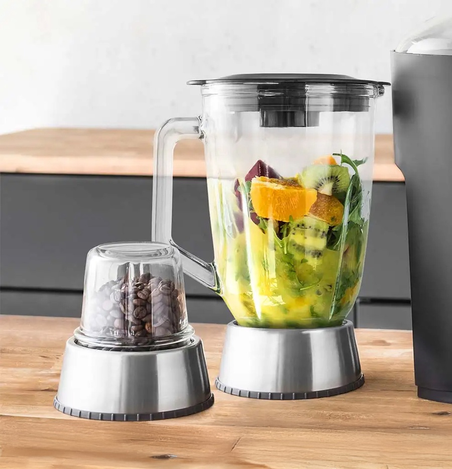 - مطحنة قهوة وتوابل (Grinder): وعاء زجاجي 0.2 لتر بيشيل لحد 150 جرام بن. بيطحن القهوة من الخشن للناعم (إسبريسو)، وممتاز لطحن التوابل والمكسرات فريش.