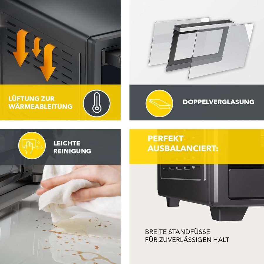 لو عايز فرن يعتمد عليه، مساحته واسعة، ويسوي الأكل "على الشعرة"، يبقى Heinrich's HMO 8405 هو الفرن اللي بتدور عليه. الفرن ده مش مجرد "تسخين عيش"، ده يغنيك عن فرن البوتاجاز الكبير بفضل سعته الـ 48 لتر وقوته الجبارة 2000 واط.
