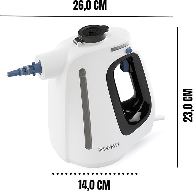 وداعاً للكيماويات والمنظفات اللي بتبوظ الإيدين! مع منظف البخار اليدوي من Heinrich's، هتقدر تنظف وتعقم بيتك كله بقوة البخار بس. الجهاز ده بقوة 1350 واط وبيطلع ضغط بخار بيوصل لـ 3 بار، يعني مفيش دهون أو بقع هتقدر تقف قدامه.
