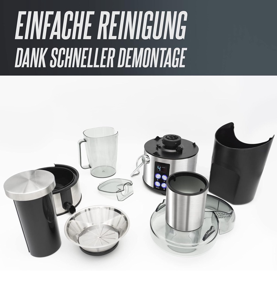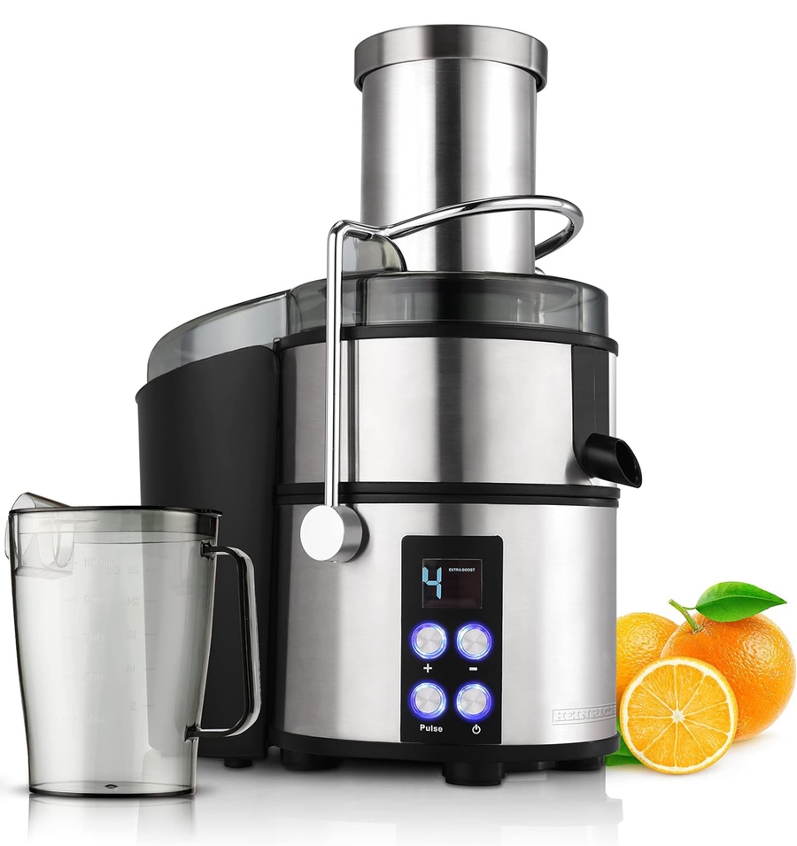- تحكم ديجيتال: شاشة ديجيتال شيك بتخليك تختار بين 4 سرعات مختلفة، عشان تناسب الفاكهة الطرية (زي الفراولة) أو الناشفة (زي الجزر والبنجر).