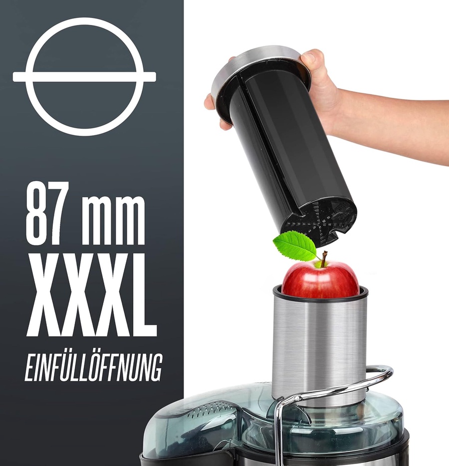 عايز تشرب عصير فريش الصبح من غير دوشة تقطيع وتجهيز؟ عصارة Heinrich's HPJ 8694 هي الحل السحري. العصارة دي بتتميز بفتحة تغذية عملاقة (XXL) مقاس 87 مم، يعني تقدر تحط التفاحة بحالها أو الجزر زي ما هو من غير ما تضيع وقتك في التقطيع.