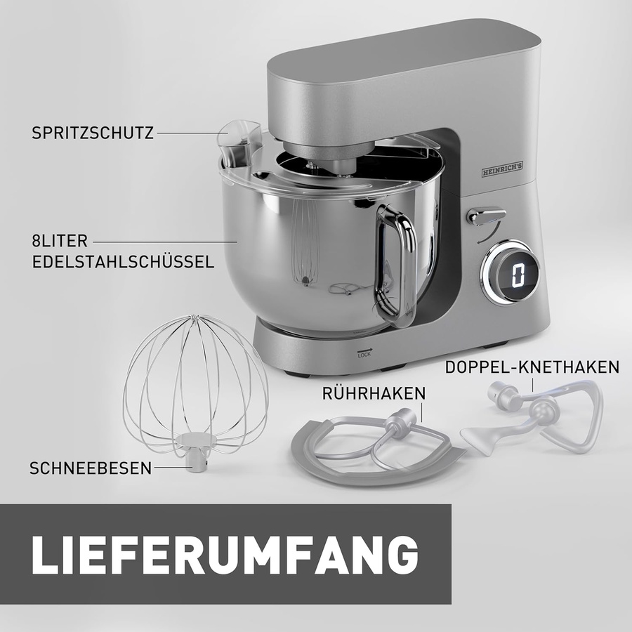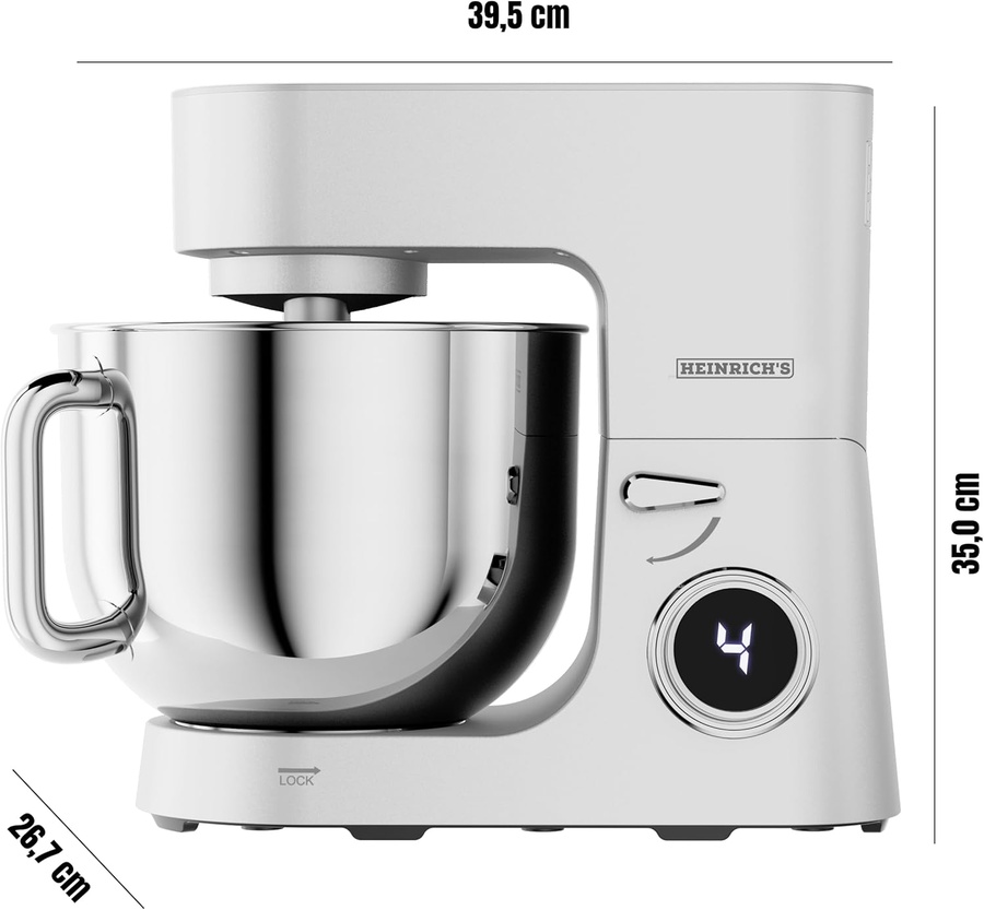 لو بتعملي كميات كبيرة أو مشروع أكل بيتي، أو حتى بتحبي تريحي دماغك وتجيبي جهاز يعيش العمر كله، يبقى عجانة Heinrich's HKM 8080 هي الاستثمار الصح. دي أقوى عجانة في فئتها بموتور جبار 2500 واط، يعني هتعجن الصخر مش بس العجين!