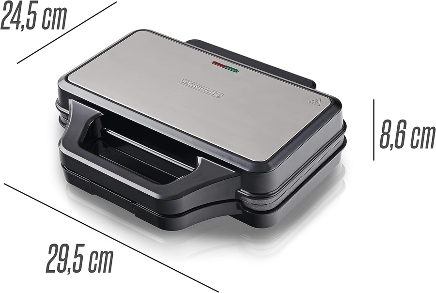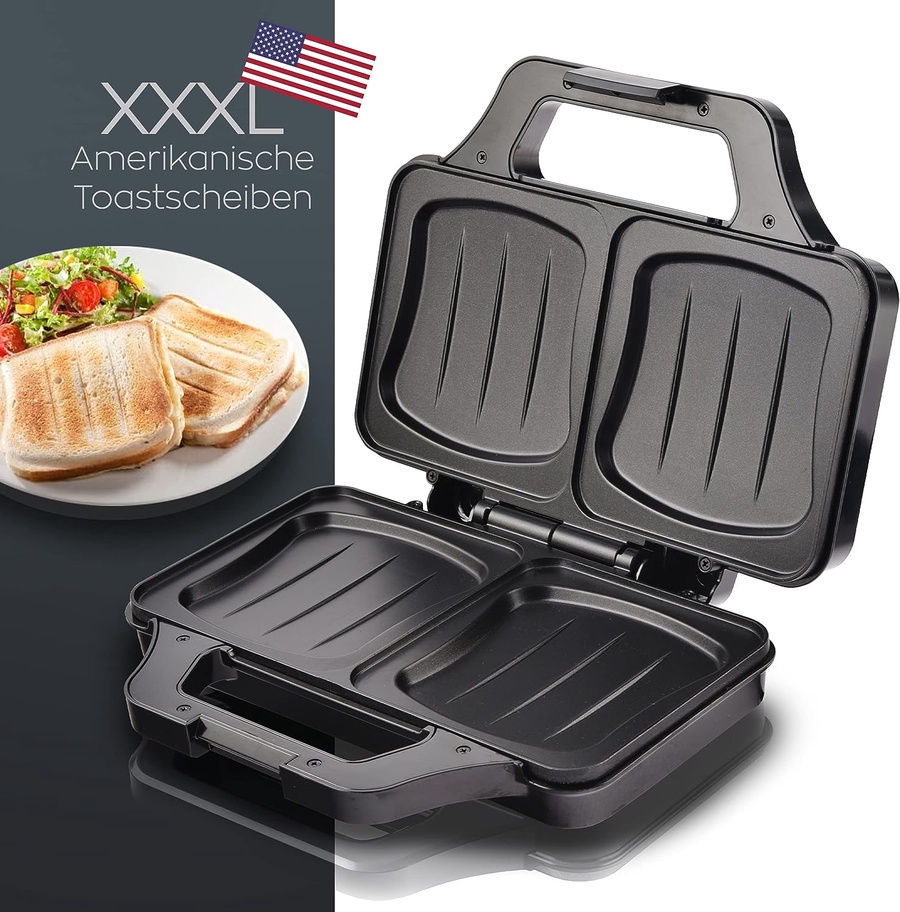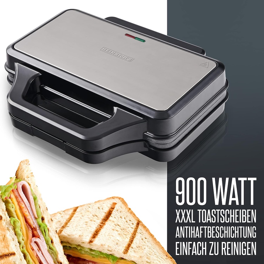 توستر Heinrich's XXXL أسود (900 واط). تسخين سريع بثرموستات أوتوماتيكي. ألواح غير لاصقة، ومقابض عازلة للحرارة. مثالي لتحضير الشواء والساندويتشات الكبيرة.