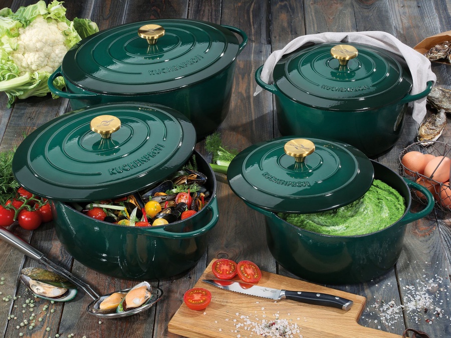 Sun-drenched vegetables, lamb from the highlands, fish and seafood – Provence offers it all. The cuisine of this southern French region is diverse, light, and healthy. The KÜCHENPROFI PROVENCE cast iron collection continues this tradition. The series is ideal for braising, simmering, boiling, roasting, and deep-frying. The cast iron absorbs heat quickly and distributes it evenly. This allows you to quickly reduce your energy consumption – saving energy and preserving the flavor of your food. PROVENCE cookware is suitable for all stovetop types, including induction, and the knobs are oven-safe up to 250°C. When served stylishly, this cookware adds a fresh touch to your table. The timeless yet sophisticated design, with its handy knobs and ergonomic handles, is a real eye-catcher. Now let your imagination run wild. How about a mussel stew with pollock, leeks, potatoes, and a dash of vermouth? Bon appétit!