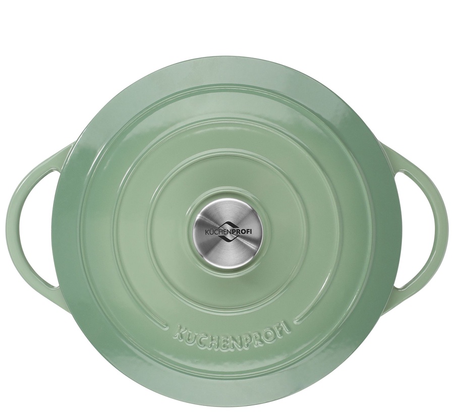 PROVENCE – Round casserole dish, 24 cm jade + enamelled cast iron + energy-saving, aroma-preserving + for all hob types including induction