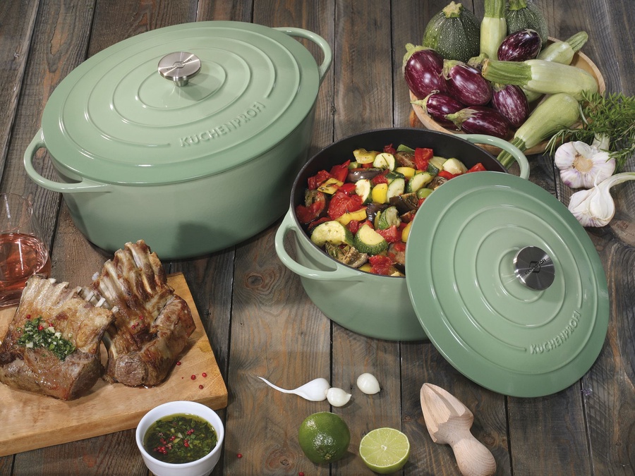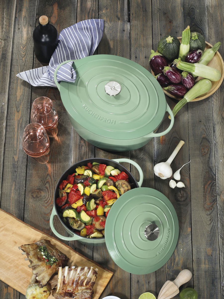 Sun-drenched vegetables, lamb from the highlands, fish and seafood – Provence offers it all. The cuisine of this southern French region is diverse, light, and healthy. The KÜCHENPROFI PROVENCE cast iron collection continues this tradition. The series is ideal for braising, simmering, boiling, roasting, and deep-frying. The cast iron absorbs heat quickly and distributes it evenly. This allows you to quickly reduce your energy consumption – saving energy and preserving the flavor of your food. PROVENCE cookware is suitable for all stovetop types, including induction, and the knobs are oven-safe up to 250°C. When served stylishly, this cookware adds a fresh touch to your table. The timeless yet sophisticated design, with its handy knobs and ergonomic handles, is a real eye-catcher. Now let your imagination run wild. How about a mussel stew with pollock, leeks, potatoes, and a dash of vermouth? Bon appétit!