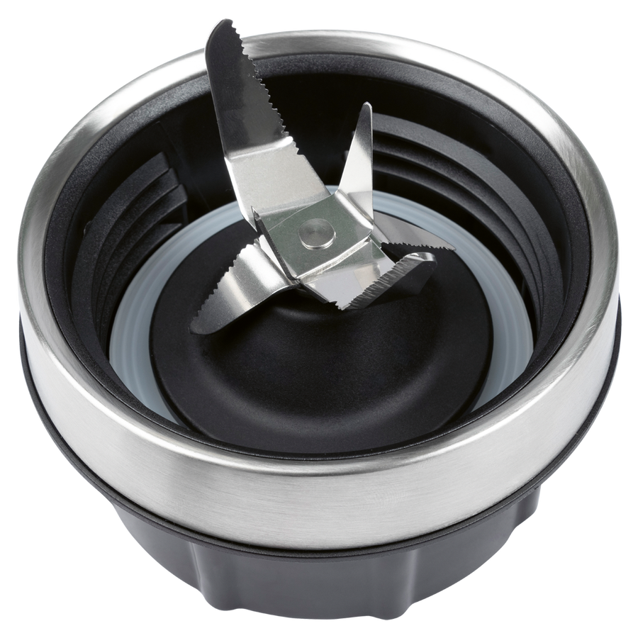 - شفرة ستانلس ستيل سداسية (6 شفرات) بتصميم "Piranha Grind" يعني بتفرم وتطحن وتخلط أي مكونات بسرعة رهيبة توصل لـ 21,000 لفة في الدقيقة!