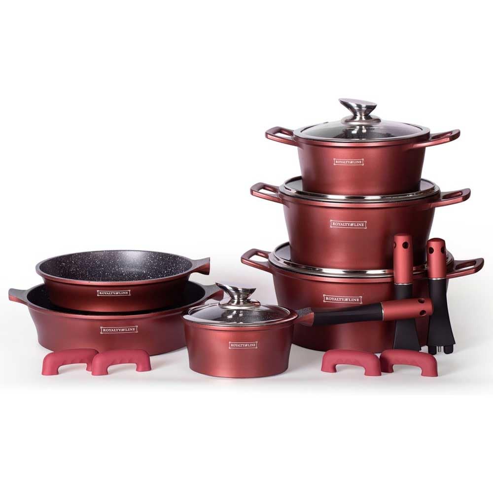 لو بتجهزي بنتك أو عايزة تجددي مطبخك "من الإبرة للصاروخ"، طقم Royalty Line / Shally Dogan الـ 17 قطعة هو الحل. الطقم ده مش مجرد حلل، ده مطبخ كامل متكامل مصنوع من الألومنيوم المصبوب (Die-Cast) ومطلي بطبقة Lava Stone (حجر بركاني) قوية جداً.