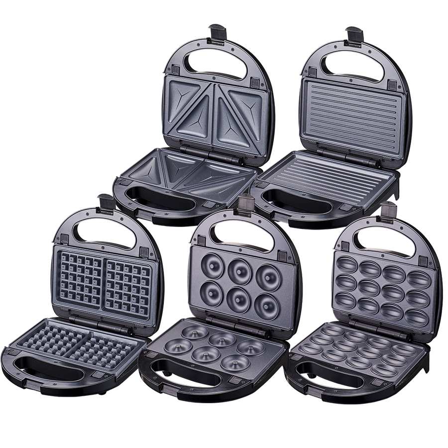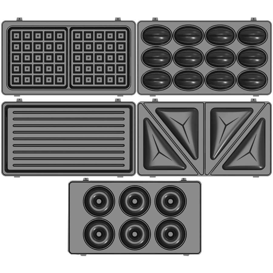 Variety of 5 Interchangeable Cooking Plates – Sandwich, Mini Donuts, Waffles, Oreshki (Russian Nut) and Panini